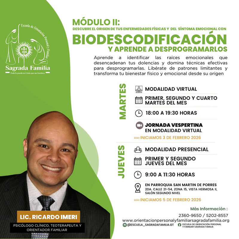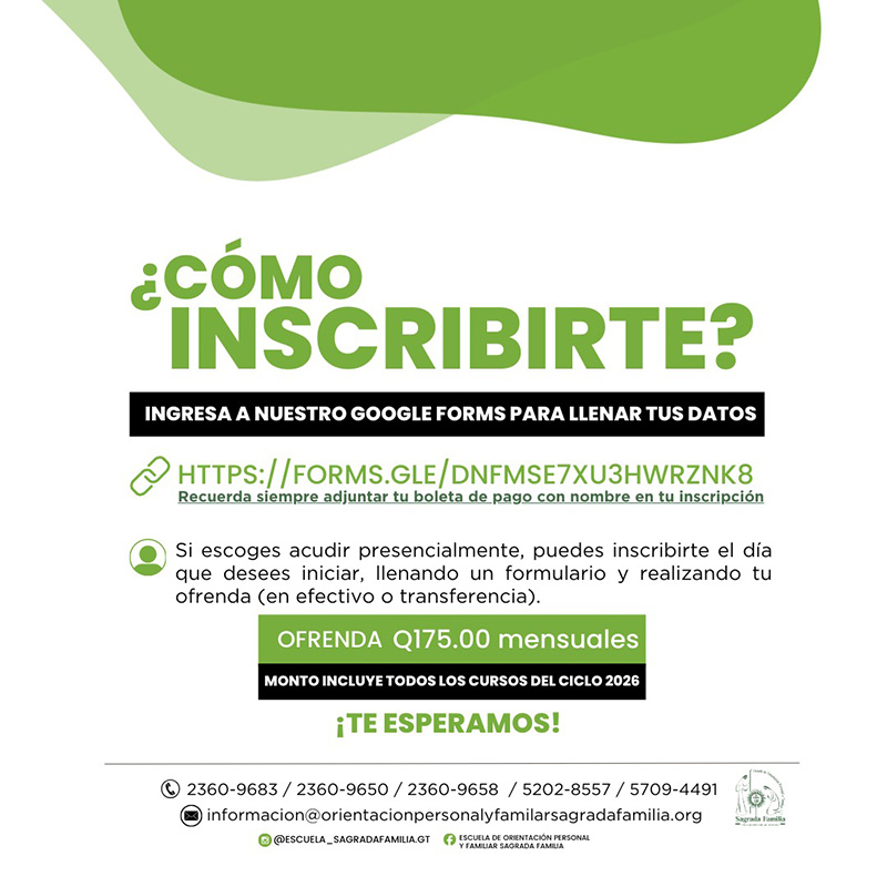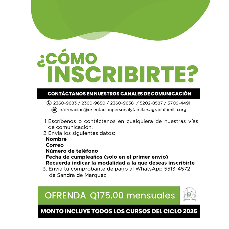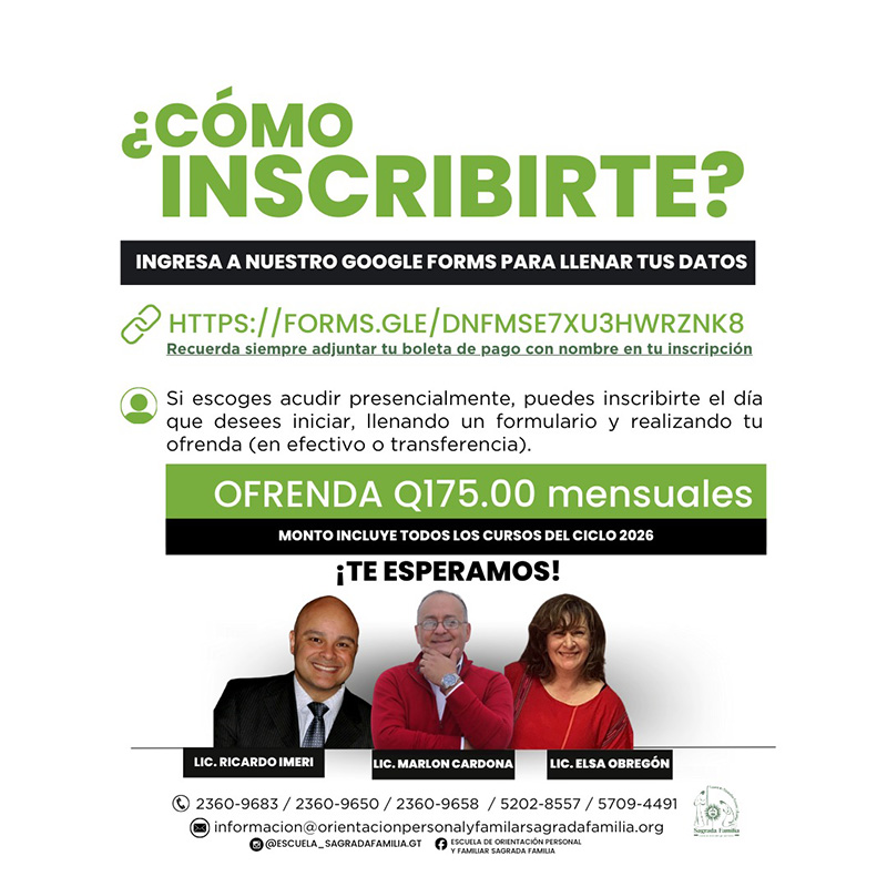 PUEDE INSCRIBIRSE EN CUALQUIER MES DEL AÑO, LOS TEMAS SON DE MUCHO INTERÉS ACTUAL, QUE SIRVEN PARA EL CRECIMIENTO PERSONAL Y ESPIRITUAL, Y SIEMPRE SE MANTIENE LA INFORMACIÓN PARA PONERSE AL DIA CON EL CURSO.